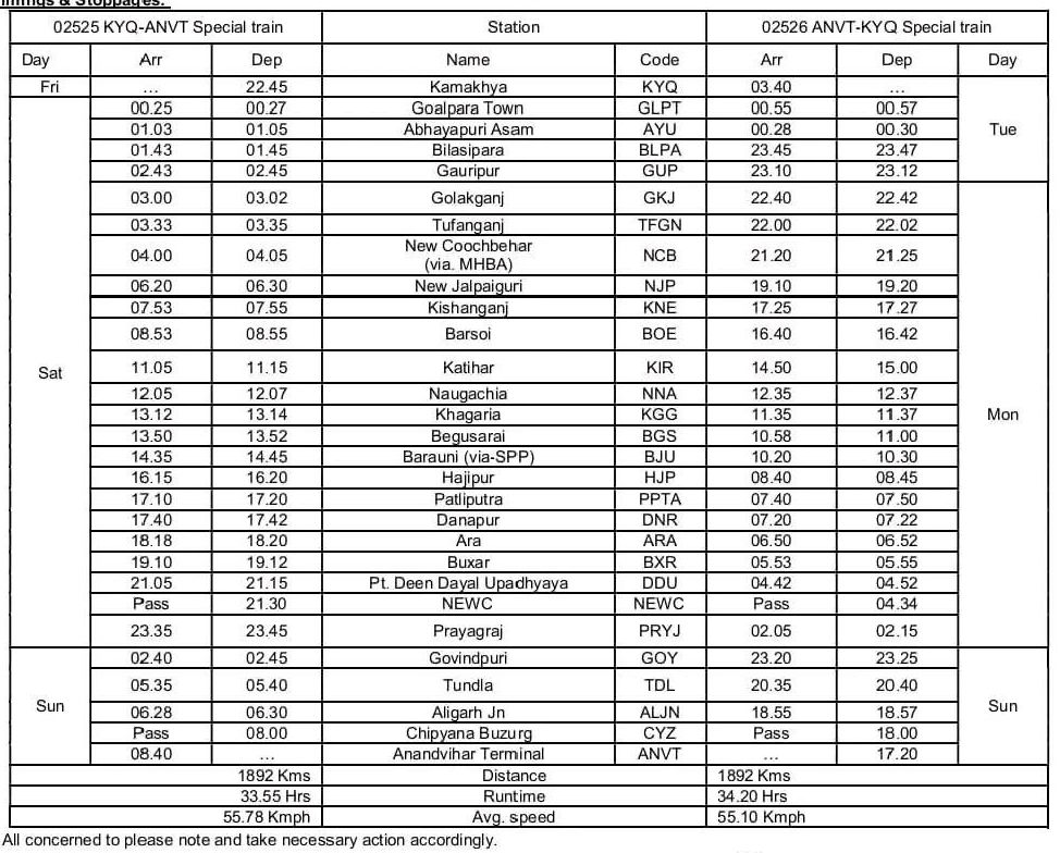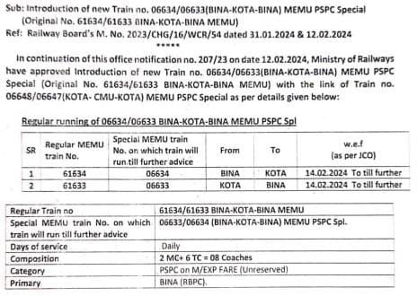 1: 11061/62 लोकमान्य तिलक टर्मिनस – जयनगर – लोकमान्य तिलक टर्मिनस पवन प्रतिदिन एक्सप्रेस इस 22 कोच की गाड़ी में अब 02 वातानुकूल टु टियर (01), 06 वातानुकूल थ्री टायर (03), 08 शयनयान स्लिपर (12)