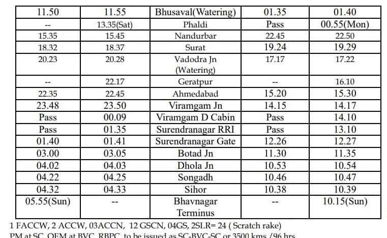 08 कोच की यह गाड़ी दोनों दिशाओंमें, सप्ताह में छह दिन, प्रत्येक सोमवार को छोड़कर चलाई जाएगी।