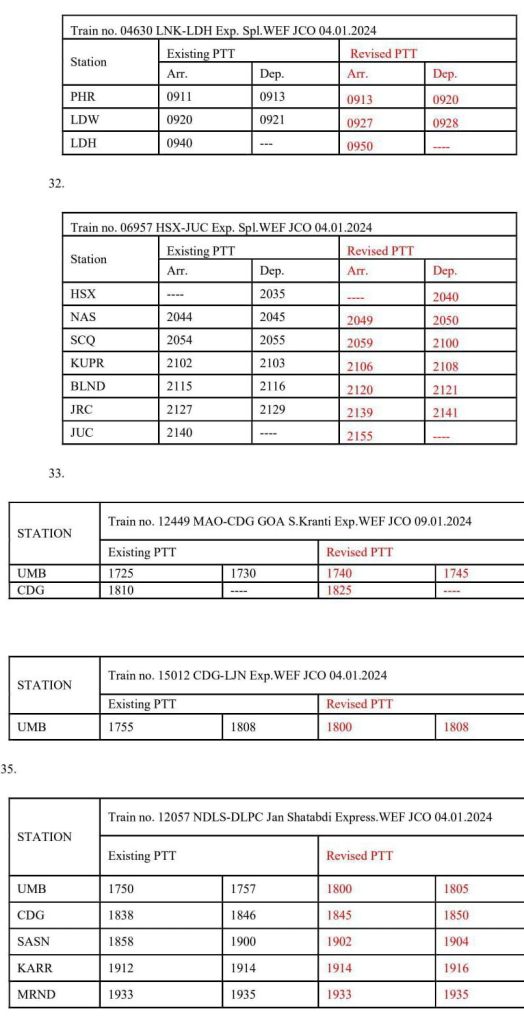 चलिए देखते है, उन अनसेटल्ड गाड़ियोंकी सूची और उनके नए प्रस्तावित समय। यात्रीगण, गाड़ी क्रमांक और बदलाव लागू होने की तिथि पर अवश्य ध्यान देवे।