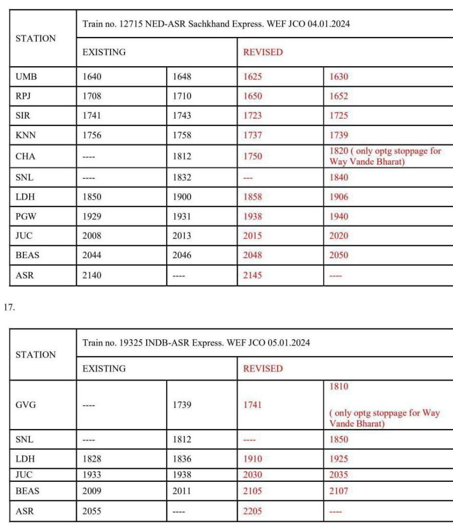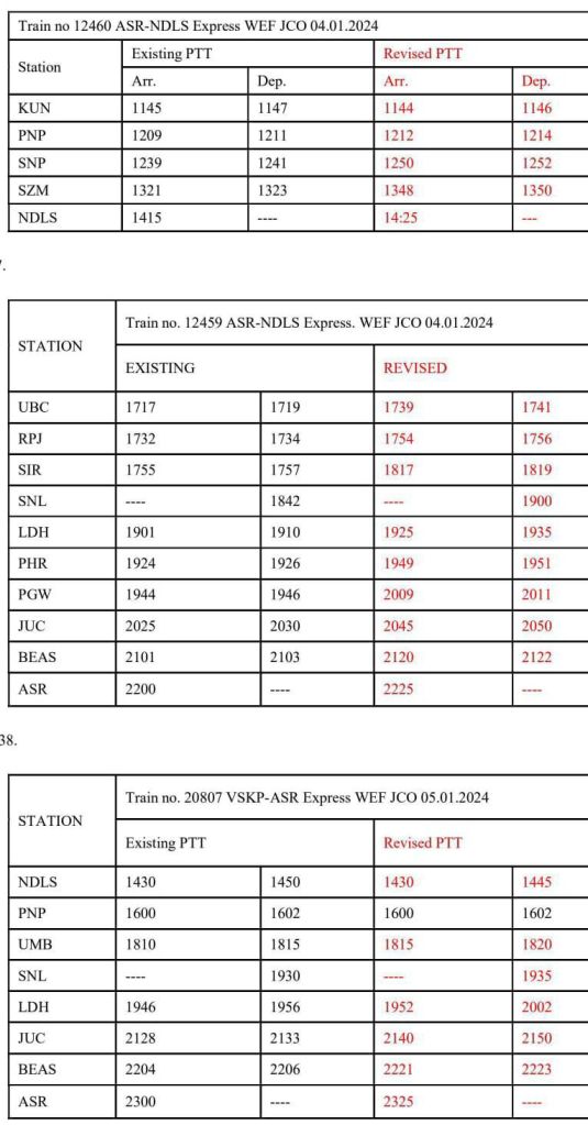 37: 12459 नई दिल्ली अमृतसर प्रतिदिन इंटरसिटी JCO 04/1/2024